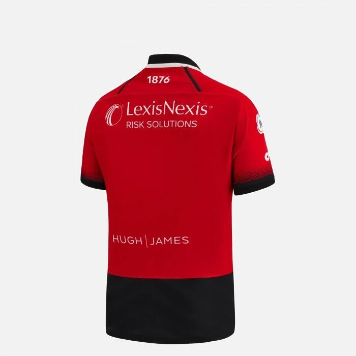 The Official Cardiff Rugby Away Replica Jersey for the 2022/23 season. Red and black shirt with chevron design over the body of the shirt, black collar and cuffs and club badge placed over the heart. This shirt is standard fit, with short sleeves and produced using polyester making it perfect for cheering on the squad from the stands.